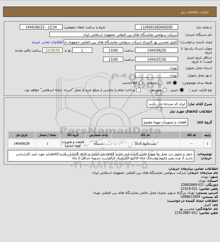 شرح کلی نیاز: ایران کد مشابه می باشد