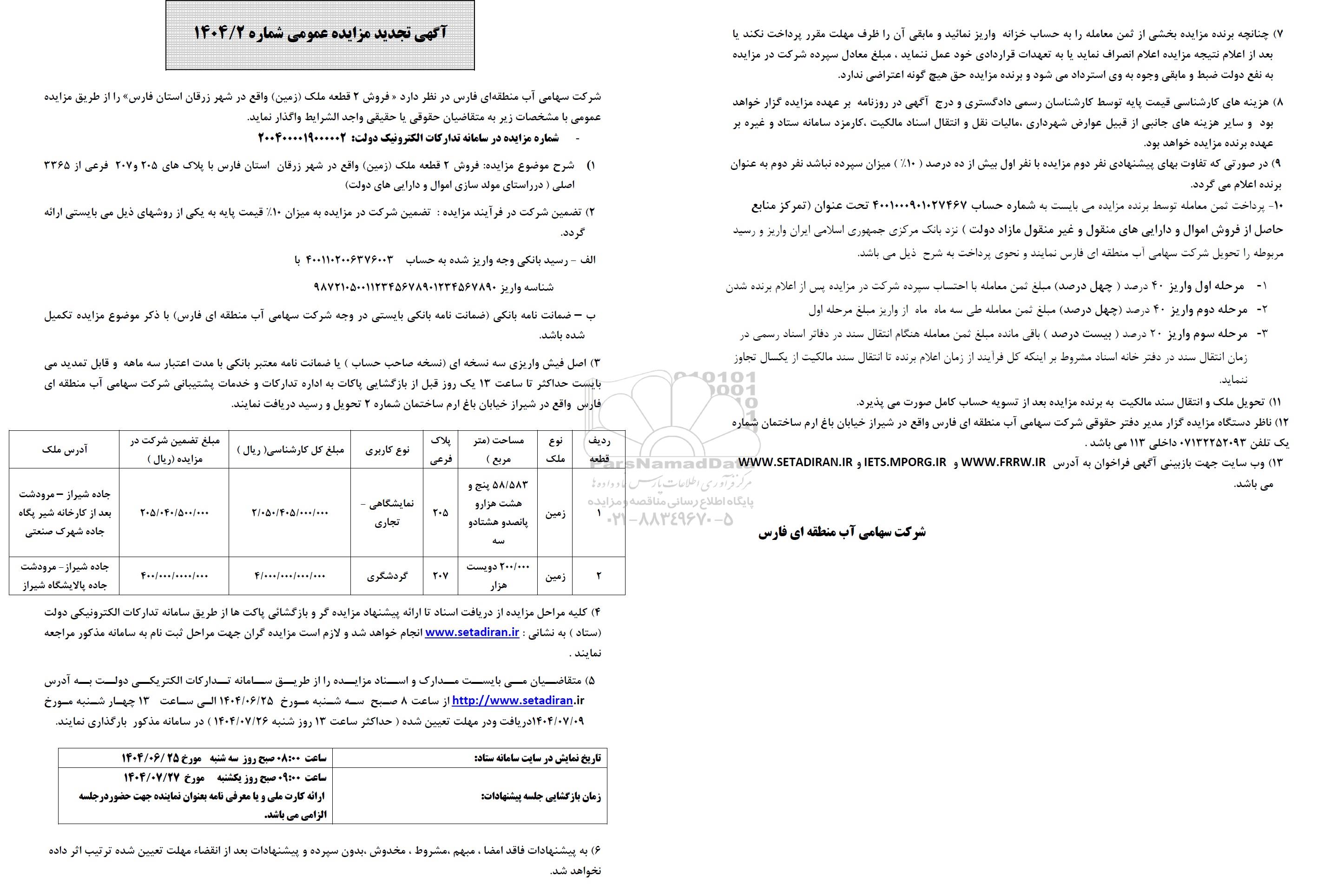 آگهی تجدید مزایده عمومی شماره 1404/2 ؟