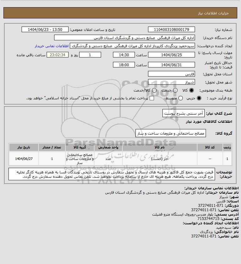 نام سازمان خریدار: اداره کل میراث فرهنگی صنایع دستی و گردشگری استان فارس