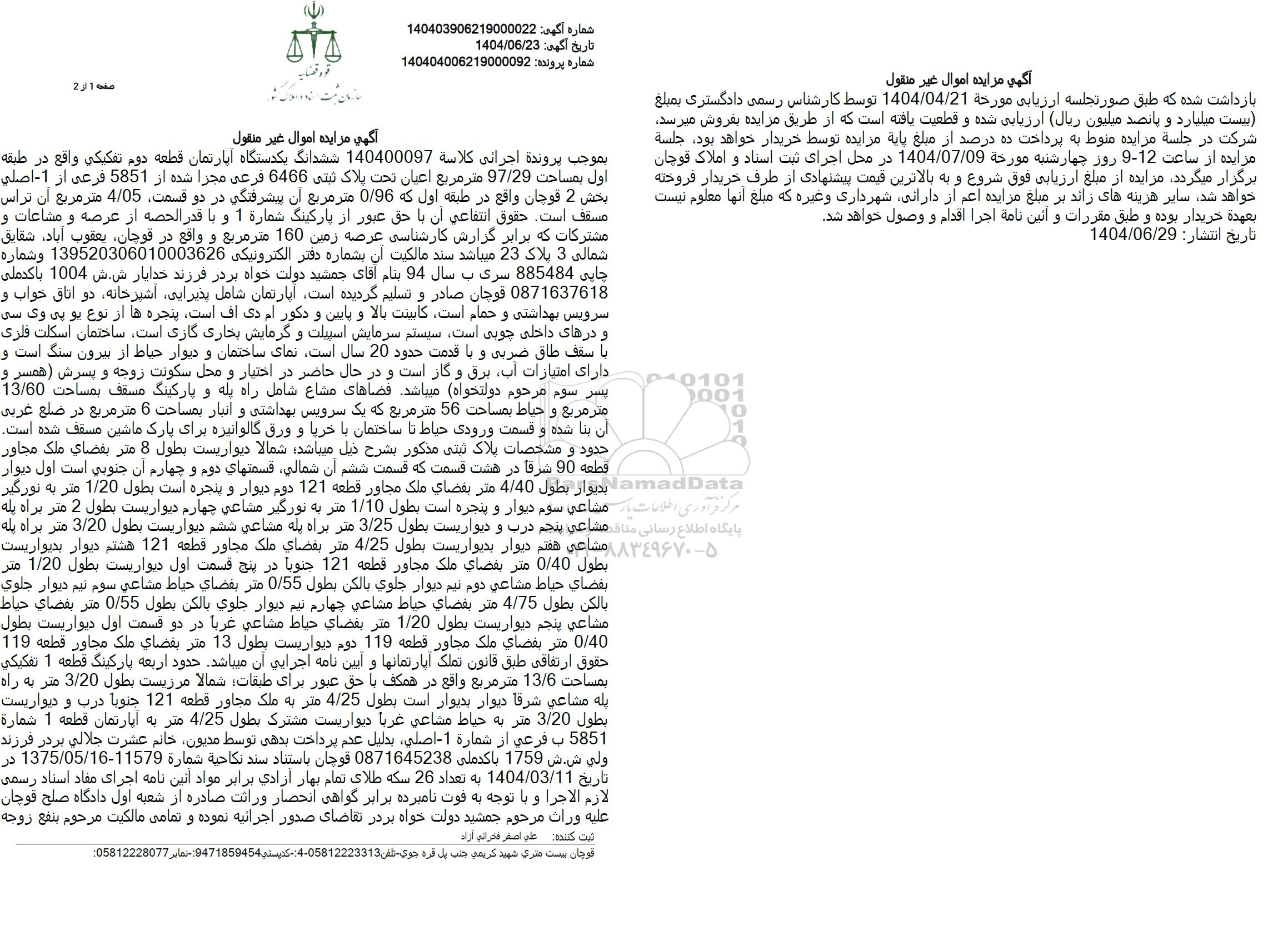شماره آگهی: 140403906219000022