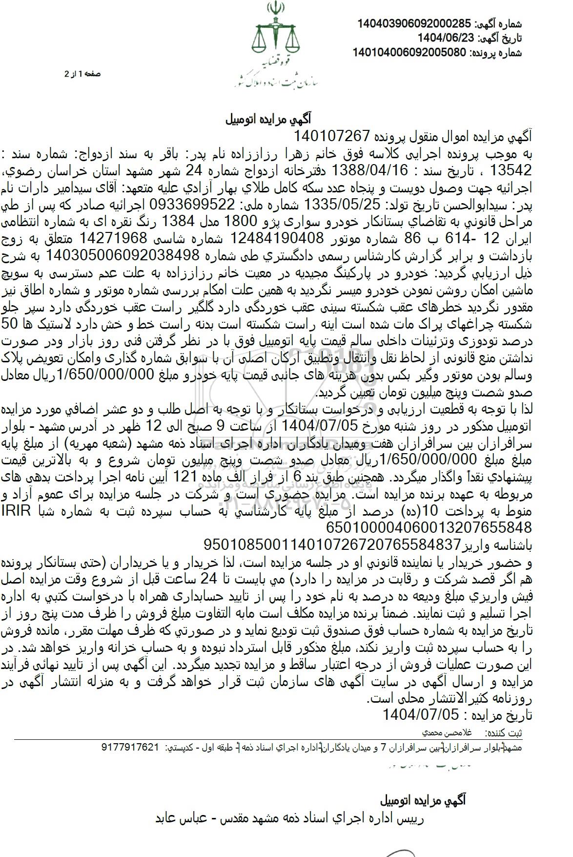 آگهی مزایده اتومبیل