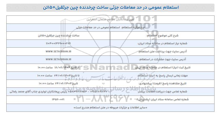 آدرس سایت جهت برداشت متن استعلام: ستاد ایران