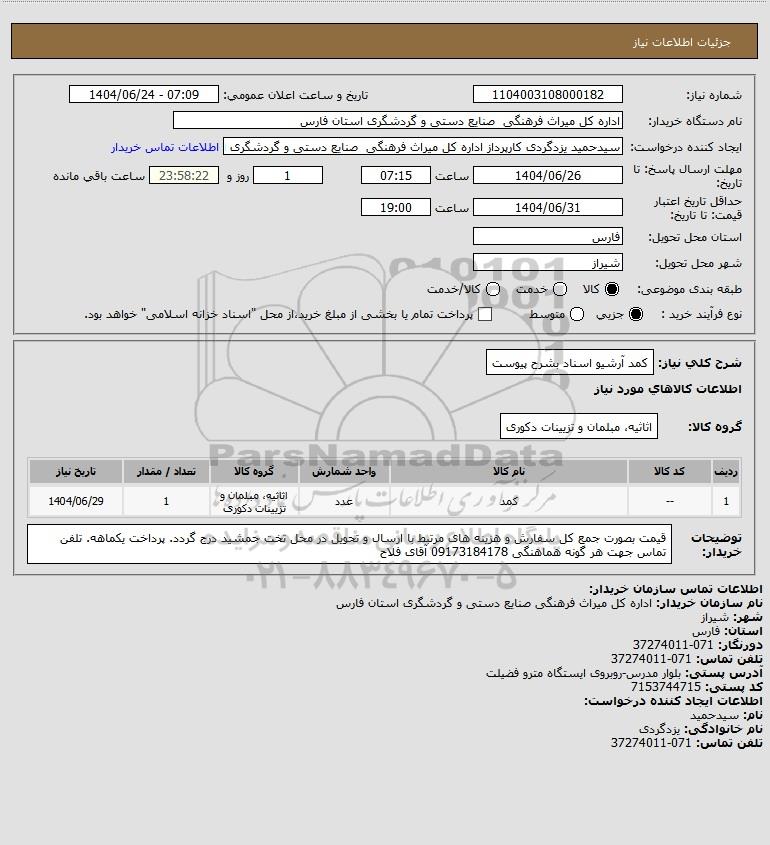 نام دستگاه خریدار:اداره کل میراث فرهنگی صنایع دستی و گردشگری استان فارس