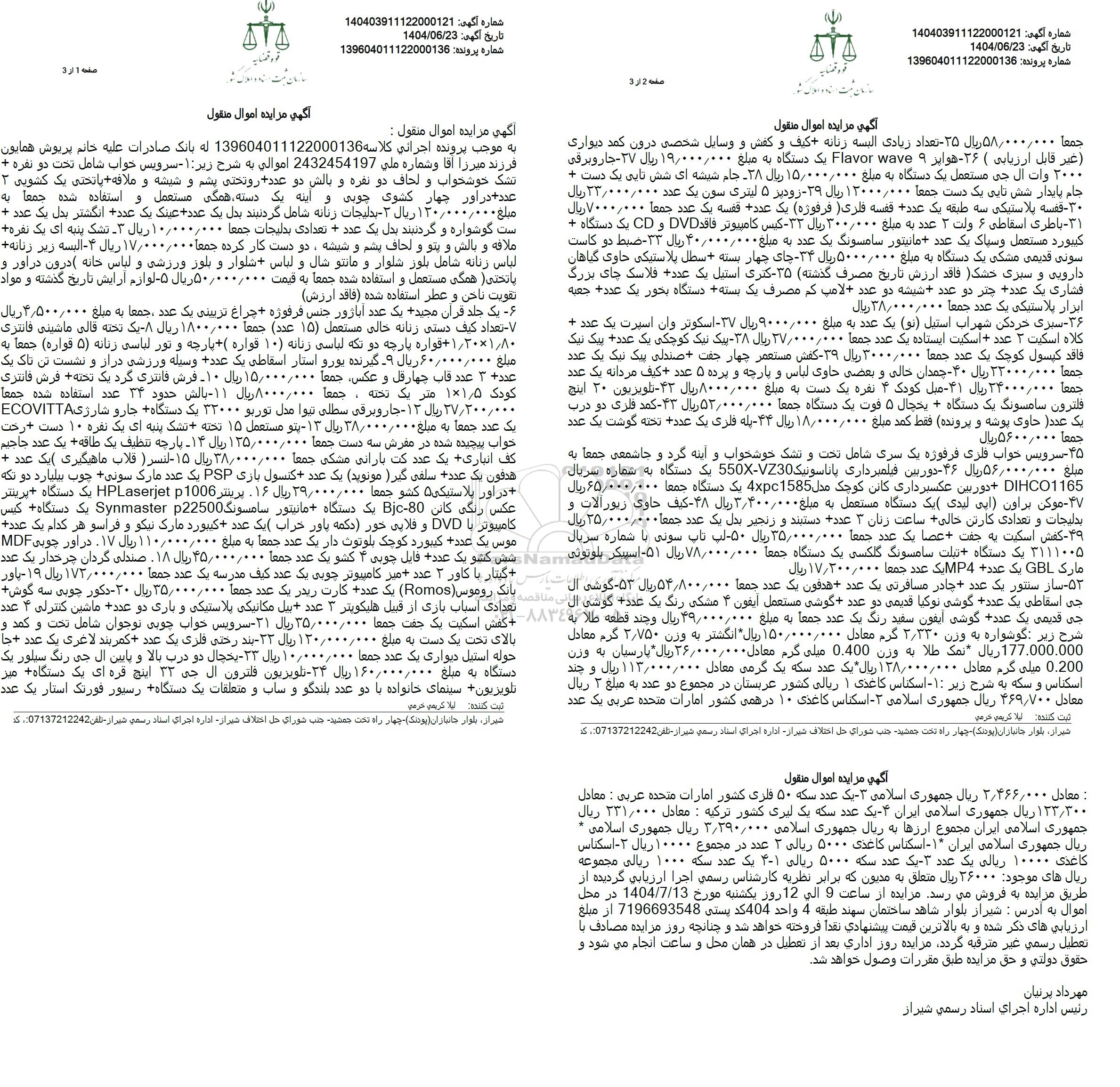 آگهی مزایده اموال منقول