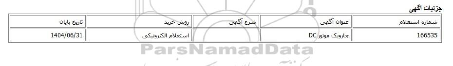 | 166535 | جاروبک موتور DC | استعلام الکترونیکی | 1404/06/31 |