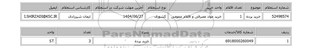 52498574خرید پرده1خرید مواد مصرفی و اقلام عمومیکشوری1404/06/27ایمان شیرزادیI.SHIRZADI@KSC.IR