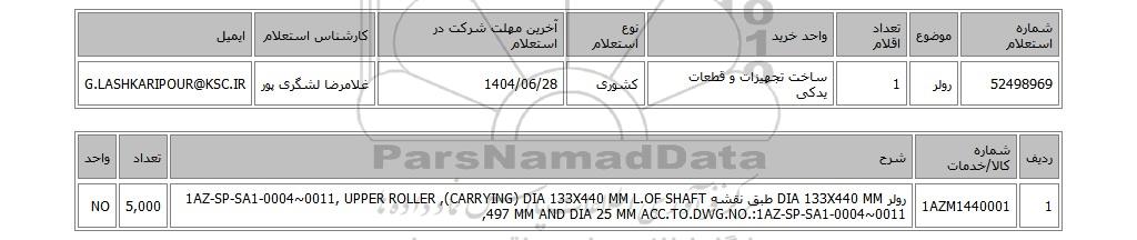 52498969رولر1ساخت تجهیزات و قطعات یدکیکشوری1404/06/28غلامرضا لشگری پورG.LASHKARIPOUR@KSC.IR