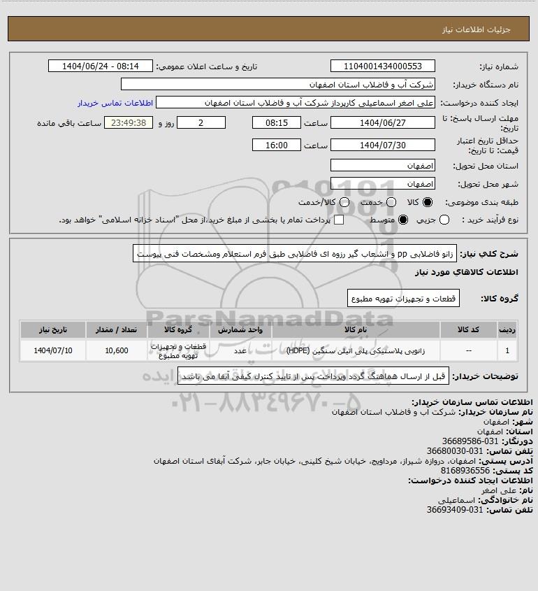 نام دستگاه خریدار:شرکت آب و فاضلاب استان اصفهان