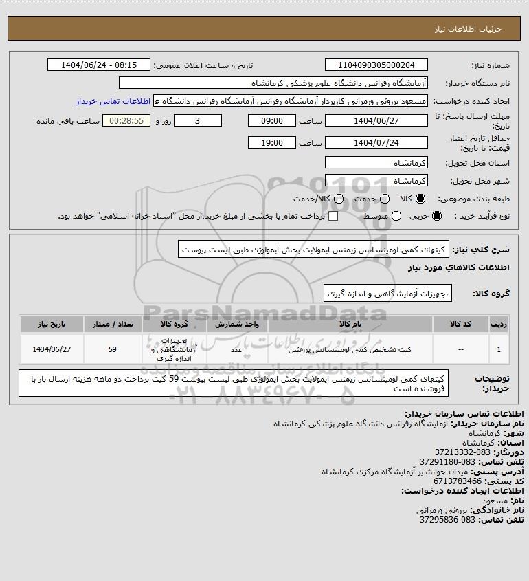 نام دستگاه خریدار:آزمایشگاه رفرانس دانشگاه علوم پزشکی کرمانشاه