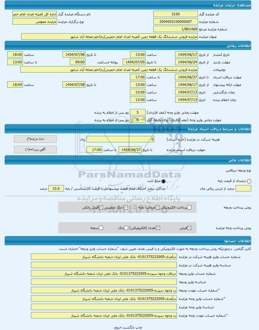 شماره مال2104003100000007نوع برگزاری مزایده مزایده عمومی