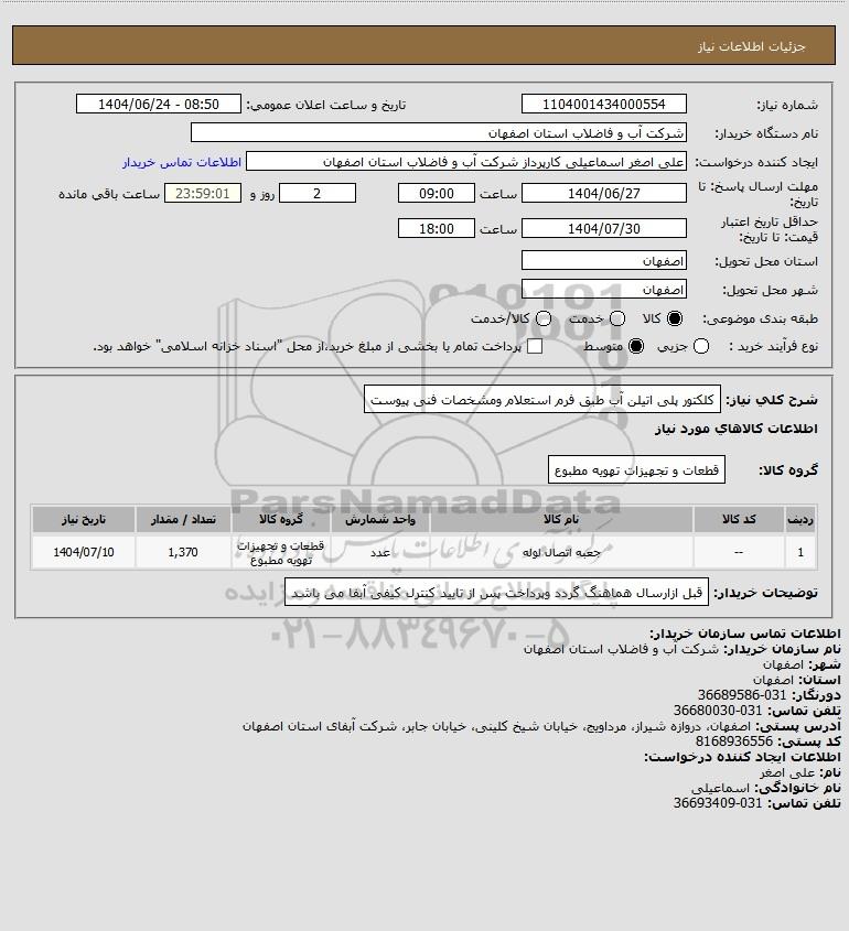 نام دستگاه خریدار:شرکت آب و فاضلاب استان اصفهان