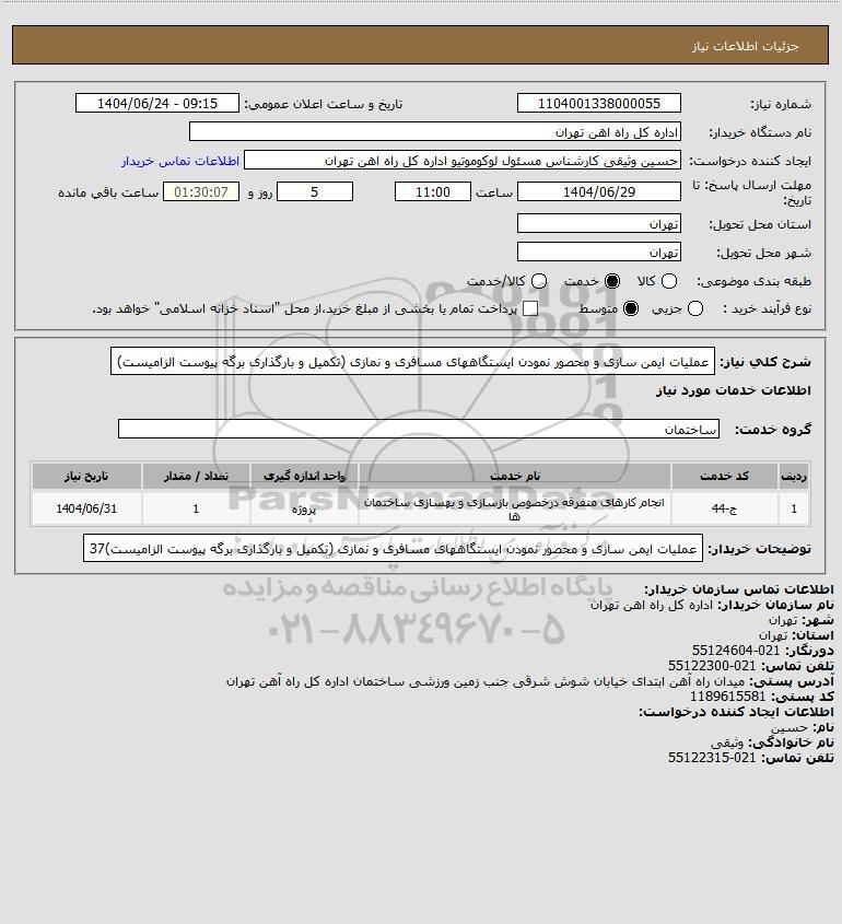 شرح کلی نیاز: عملیات ایمن سازی و محصور نمودن ایستگاههای مسافری و نمازی (تکمیل و بارگذاری برگه پیوست الزامیست)