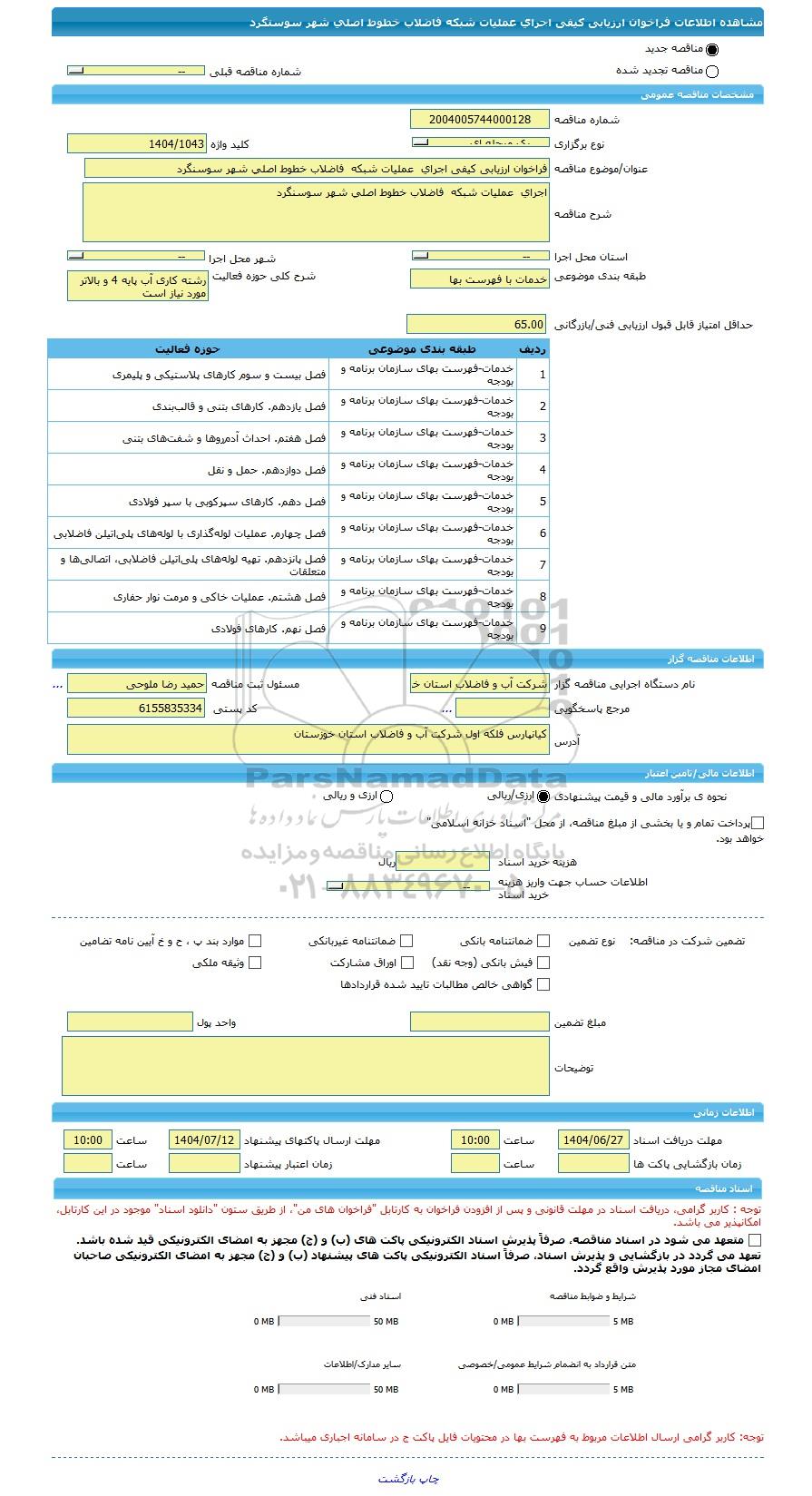 | شماره مناقصه | 2004005744000128 | ||||||||||||||||||||||||||||||||
