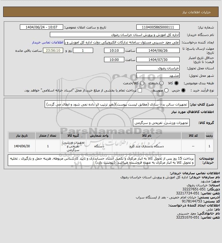 نام دستگاه خریدار:اداره کل اموزش و پرورش استان خراسان رضوی