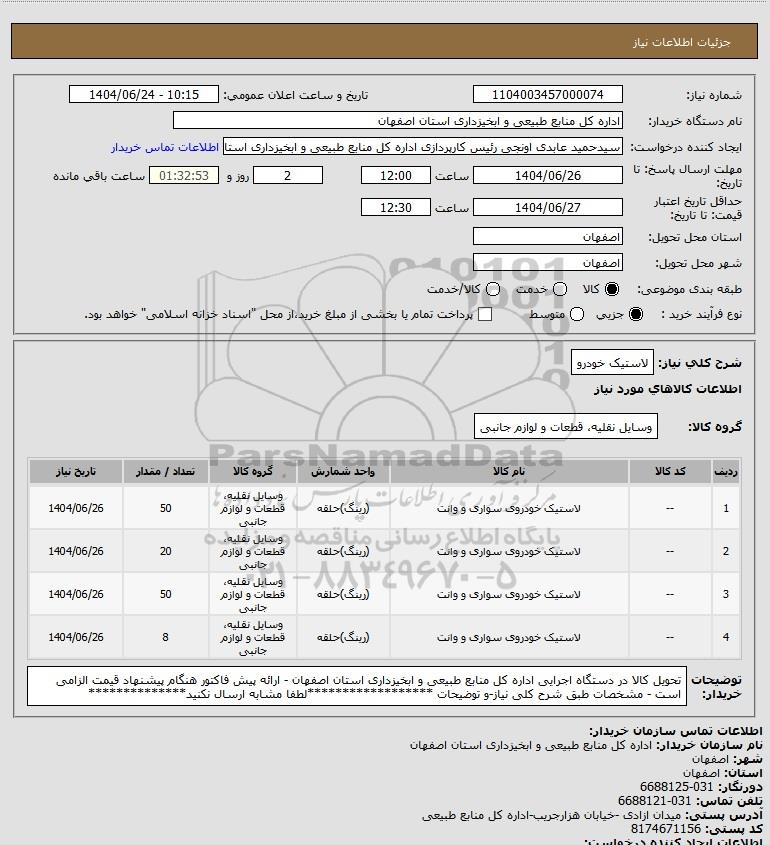 نام دستگاه خریدار:اداره کل منابع طبیعی و ابخیزداری استان اصفهان