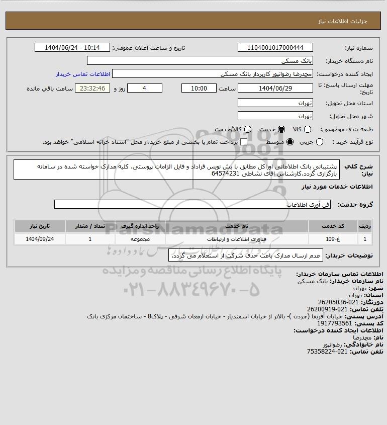 نام دستگاه خریدار:بانک مسکن