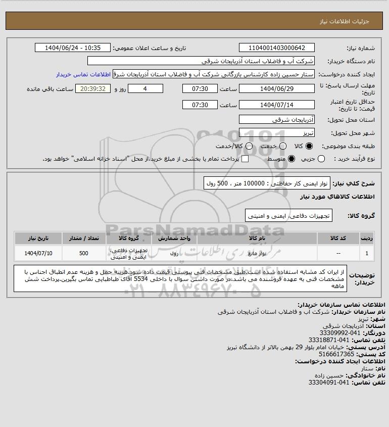 شرح کلی نیاز: نوار ایمنی کار حفاظتی : 100000 متر ، 500 رول