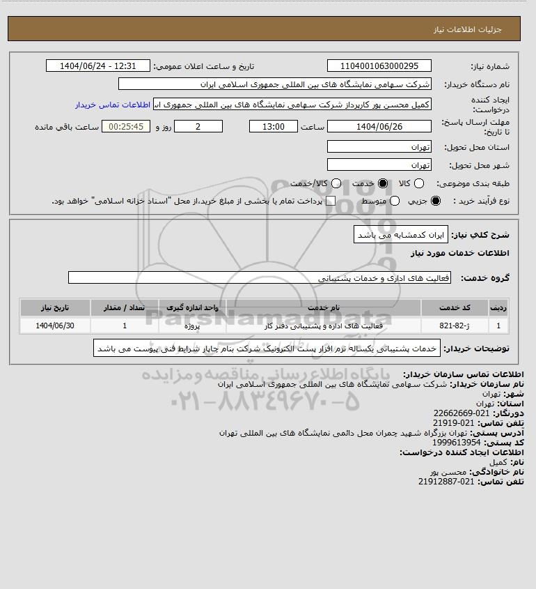 شرح کلی نیاز: ایران کدمشابه می باشد