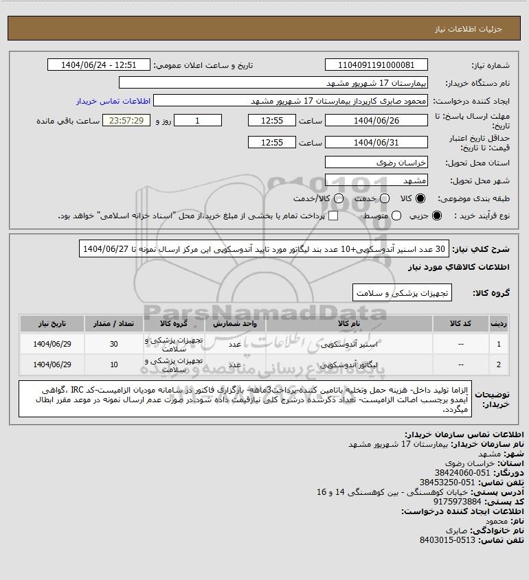 نام دستگاه خریدار:بیمارستان 17 شهریور مشهد