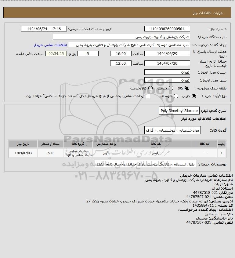 شرح کلی نیاز: Poly Dimethyl Siloxane