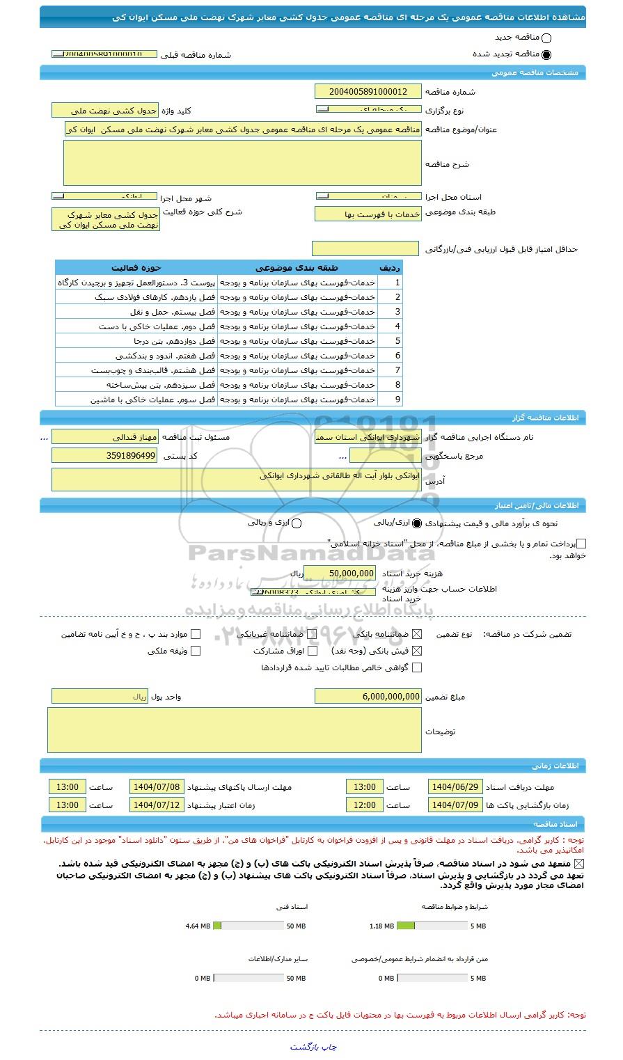 مناقصه مناقصه عمومی یک مرحله ای مناقصه عمومی جدول کشی معابر شهرک نهضت ملی مسکن ایوان کی, مناقصه، مناقصه عمومی یک مرحله ای مناقصه عمومی جدول کشی معابر شهرک نهضت ملی مسکن ایوان کی