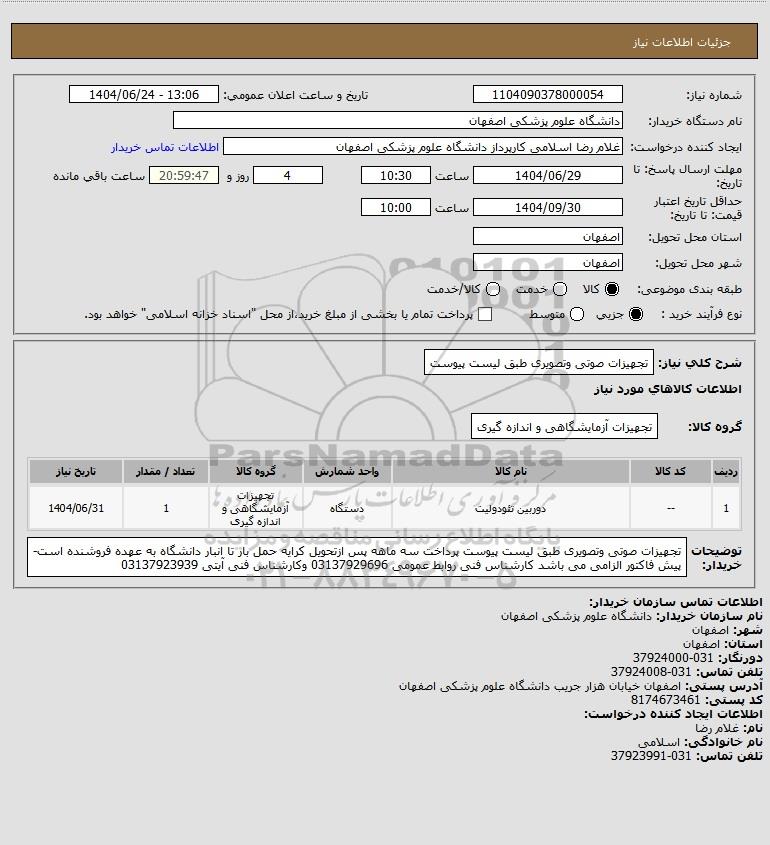 نام دستگاه خریدار:دانشگاه علوم پزشکی اصفهان