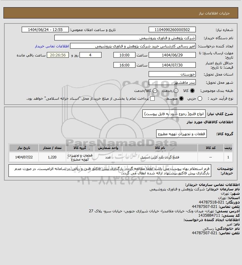 شرح کلی نیاز: انواع فلنج( رجوع شود به فایل پیوست)