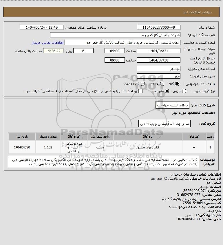 نام دستگاه خریدار:شرکت پالایش گاز فجر جم
