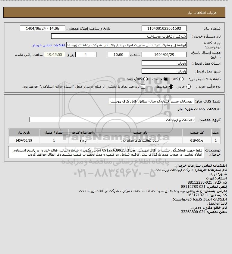 شرح کلی نیاز: بهسازی مسیر فیبرنوری میانه مطابق فایل های پیوست
