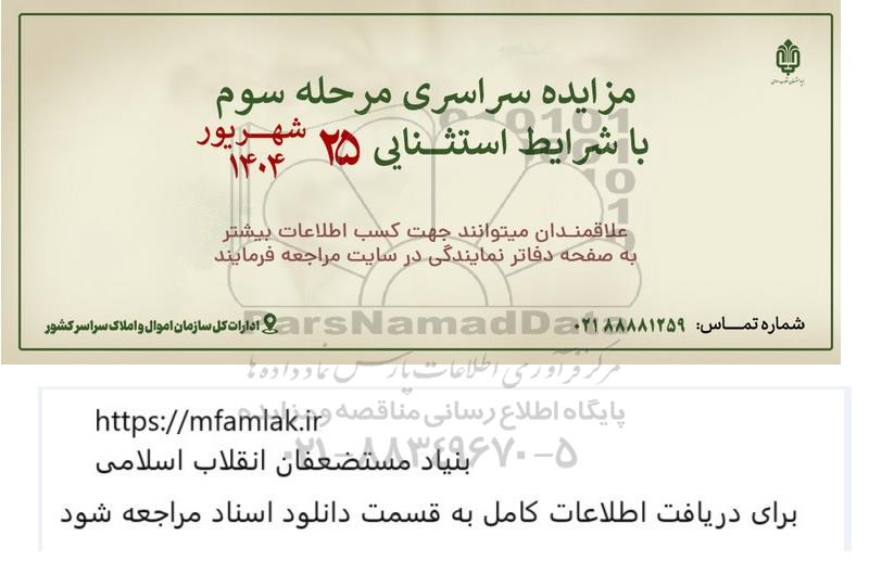 مزایده سراسری مرحله سوم با شرایط استثنایی