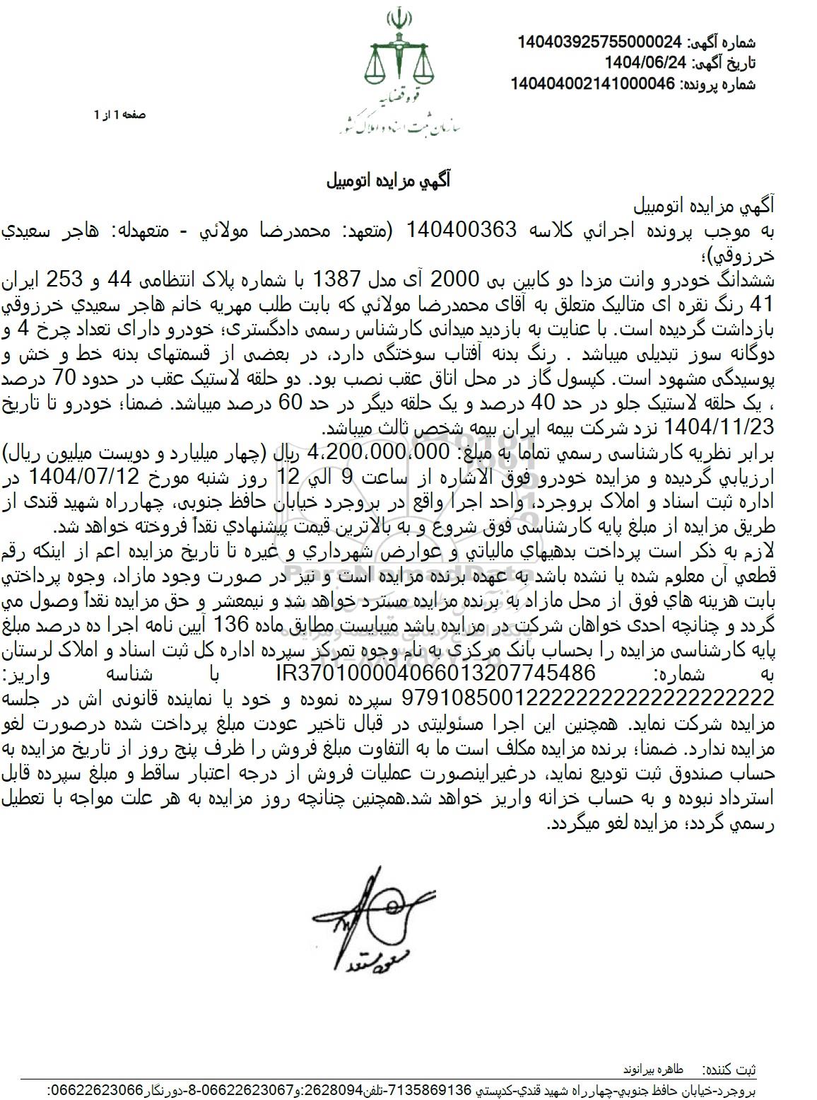 مکان برگزاری اموال واگذاری استانهای لرستان و دستهبندیهای مربوط به این حراجی انواع خودرو سبک میباشد.