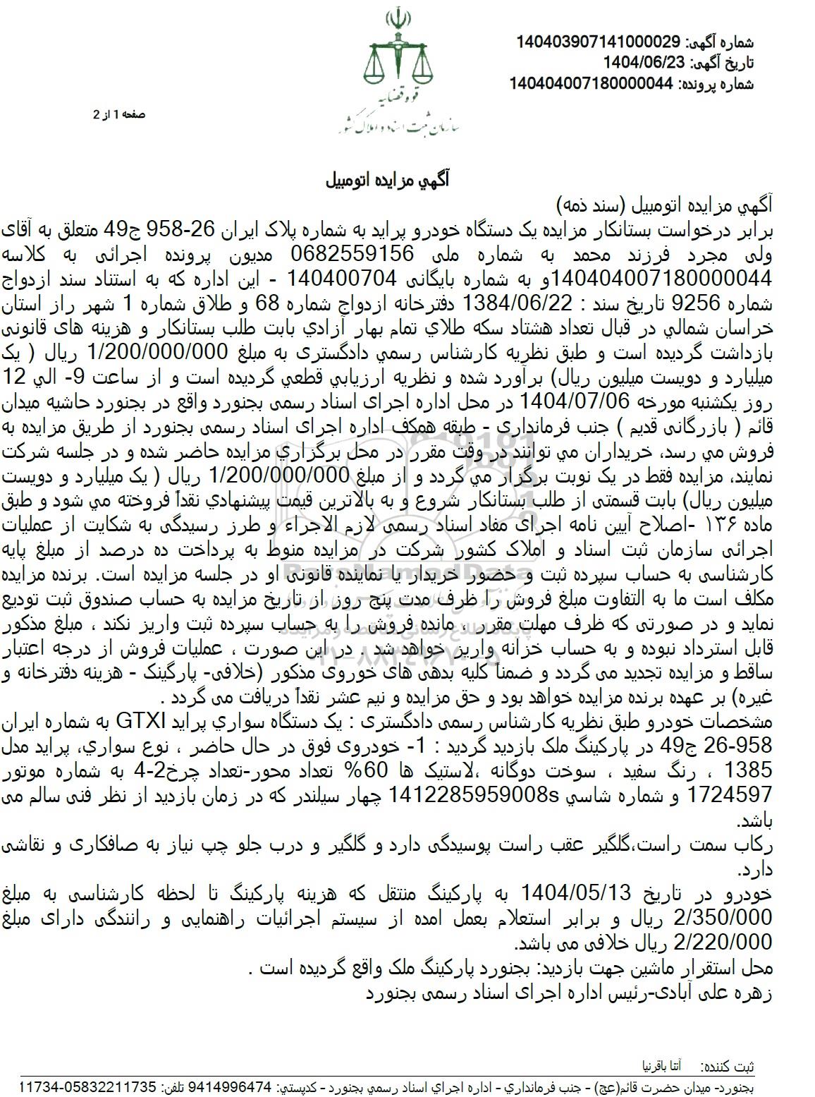 مکان برگزاری اموال واگذاری استانهای خراسان شمالی و دستهبندیهای مربوط به این حراجی انواع خودرو سبک میباشد.