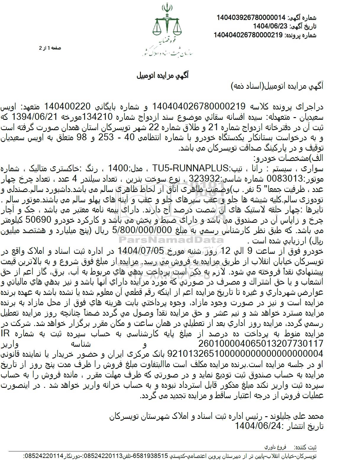 آگهی مزایده اتومبیل