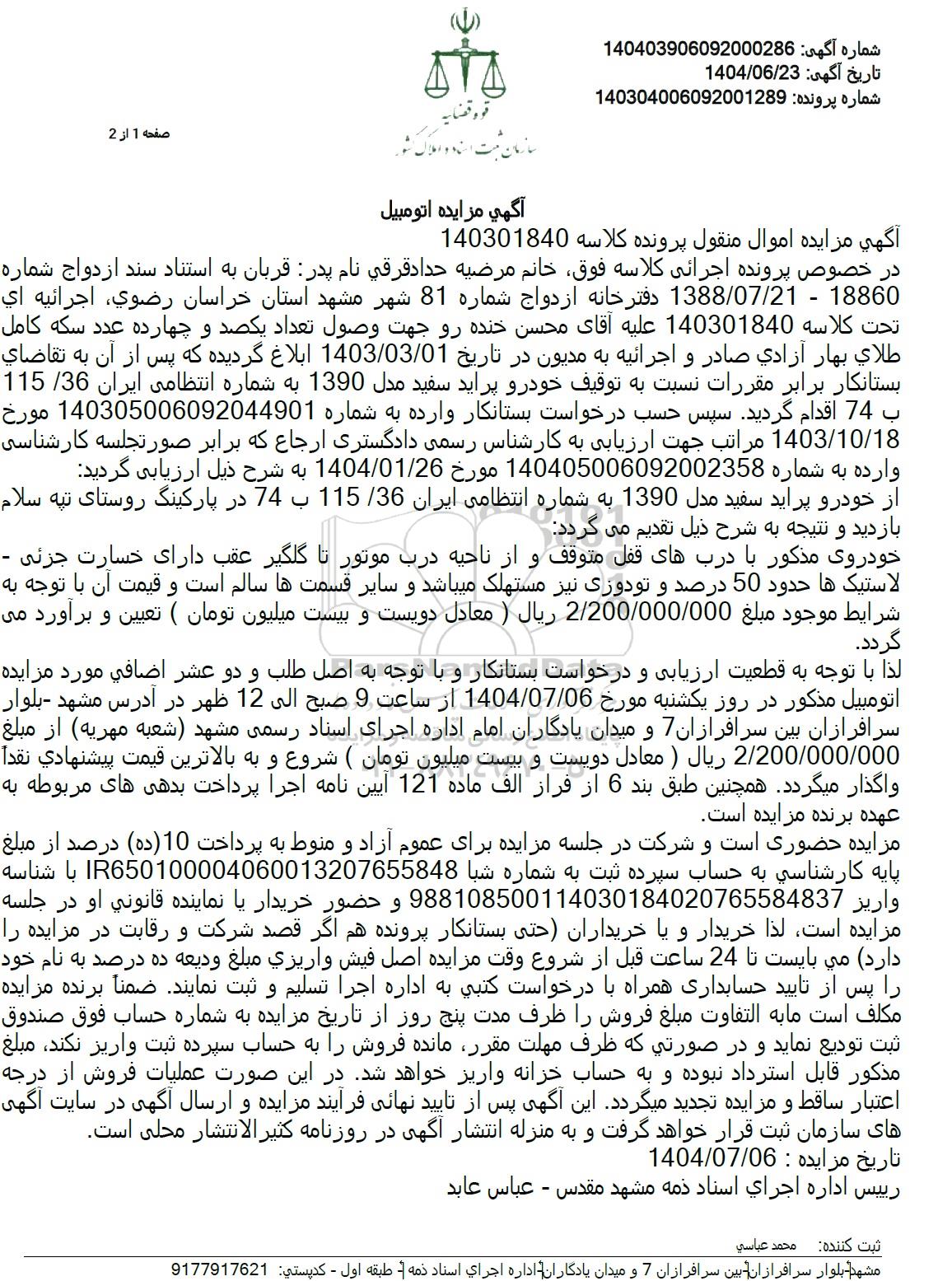 اجرای اسناد رسمی مشهد (شعبه مهریه)