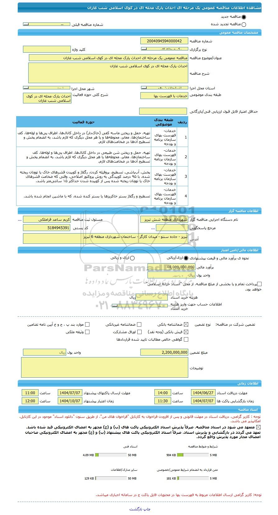 مناقصه مناقصه عمومی یک مرحله ای احداث پارک محله ای در کوی اسلامی شنب غازان, مناقصه، مناقصه عمومی یک مرحله ای احداث پارک محله ای در کوی اسلامی شنب غازان