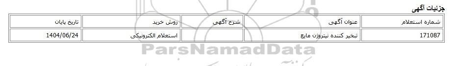 | 171087 | تبخیر کننده نیتروژن مایع | استعلام الکترونیکی | 1404/06/24 |