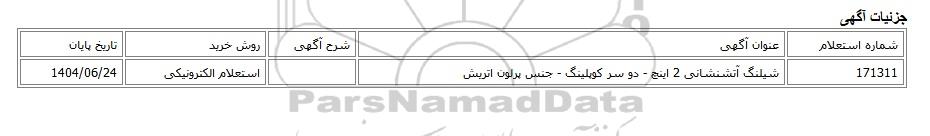 | 171311 | شیلنگ آتشنشانی 2 اینچ - دو سر کوپلینگ - جنس پرلون اتریش | استعلام الکترونیکی | 1404/06/24 |