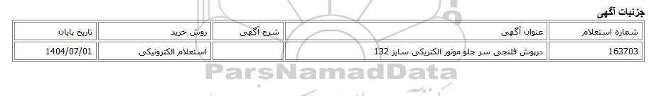 | 163703 | درپوش فلنجی سر جلو موتور الکتریکی سایز 132 | استعلام الکترونیکی | 1404/07/01 |