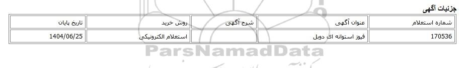 | 170536 | فیوز استوانه ای دوبل | استعلام الکترونیکی | 1404/06/25 |