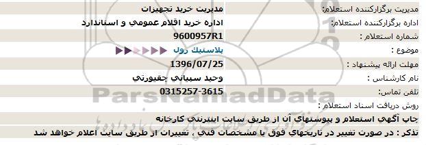 اداره برگزارکننده استعلام:     اداره خرید اقلام عمومی و استاندارد
