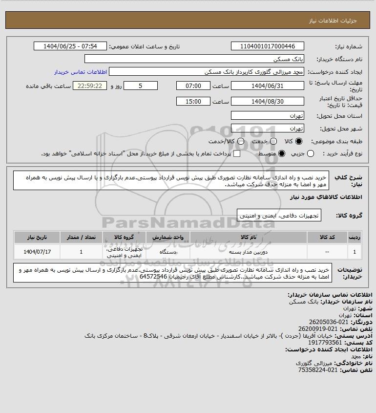 نام سازمان خریدار: بانک مسکن
