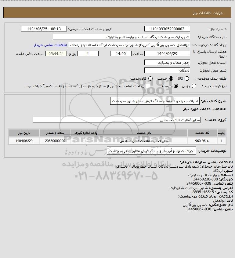 نام دستگاه خریدار:شهرداری سردشت لردگان استان چهارمحال و بختیاری