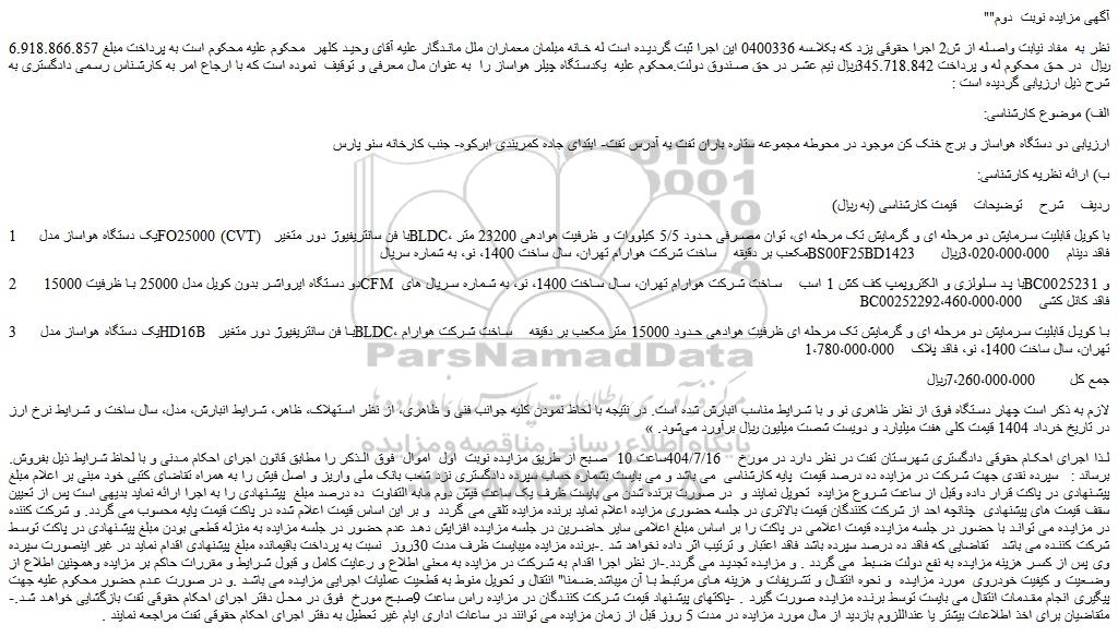 3 حراج حضوری فروش اقلام ضایعاتی مانند ...- نوبت دوم 9807035 1404/08/14 new not special not payed فارس