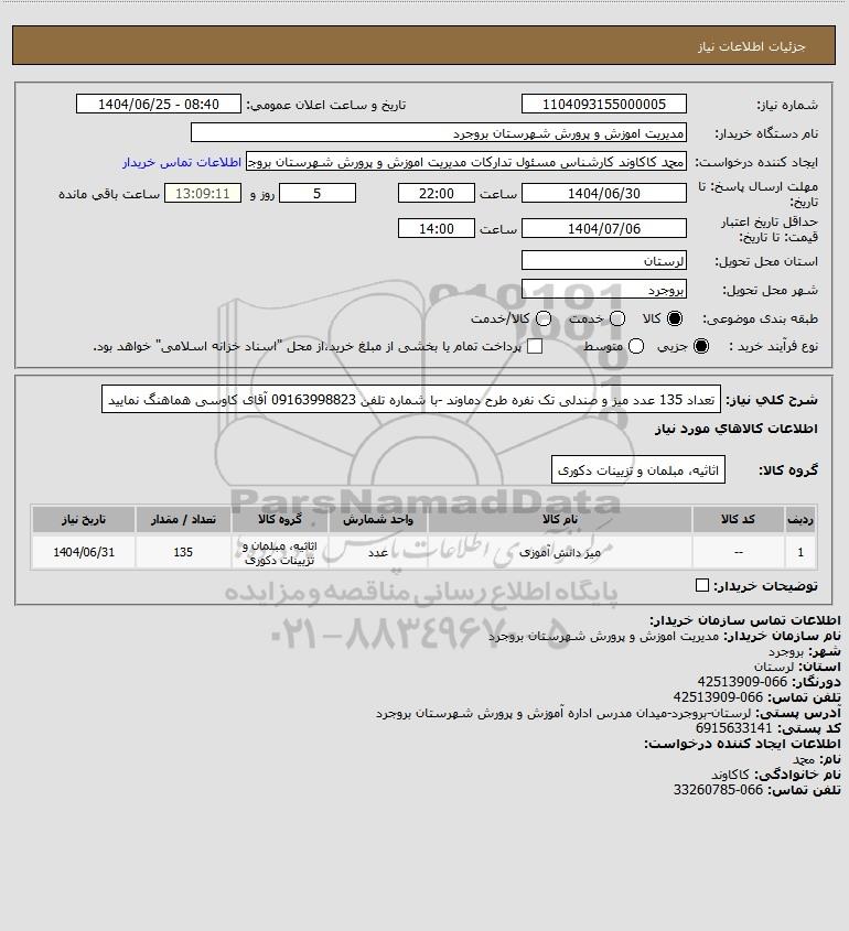 نام دستگاه خریدار:مدیریت اموزش و پرورش شهرستان بروجرد