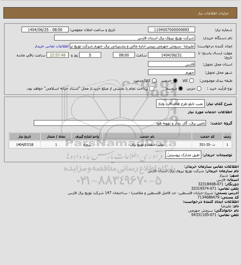 استعلام نصب تابلو طرح های افت ولتاژ, استعلام نصب تابلو طرح های افت ولتاژ