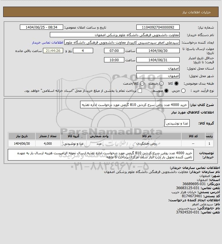 شرح کلی نیاز: خرید 4000 عدد روغن سرخ کردنی 810 گرمی مورد درخواست اداره تغذیه