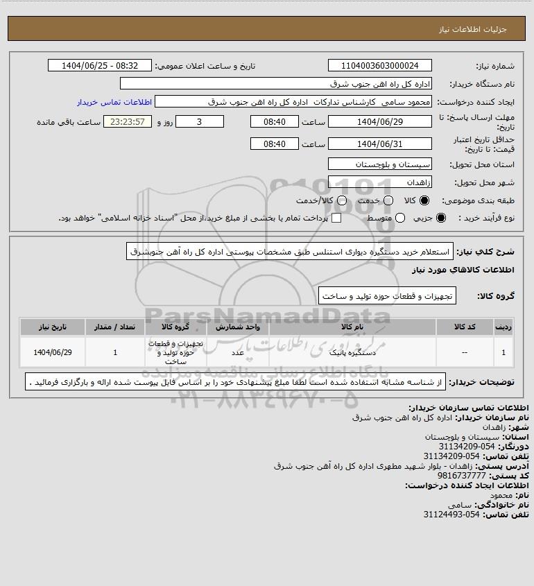 نام دستگاه خریدار:اداره کل راه اهن جنوب شرق