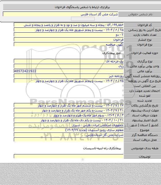 برای شرکت در مناقصه حتما از تصویر آگهی در سایت پارس نماد داده ها استفاده نمایید