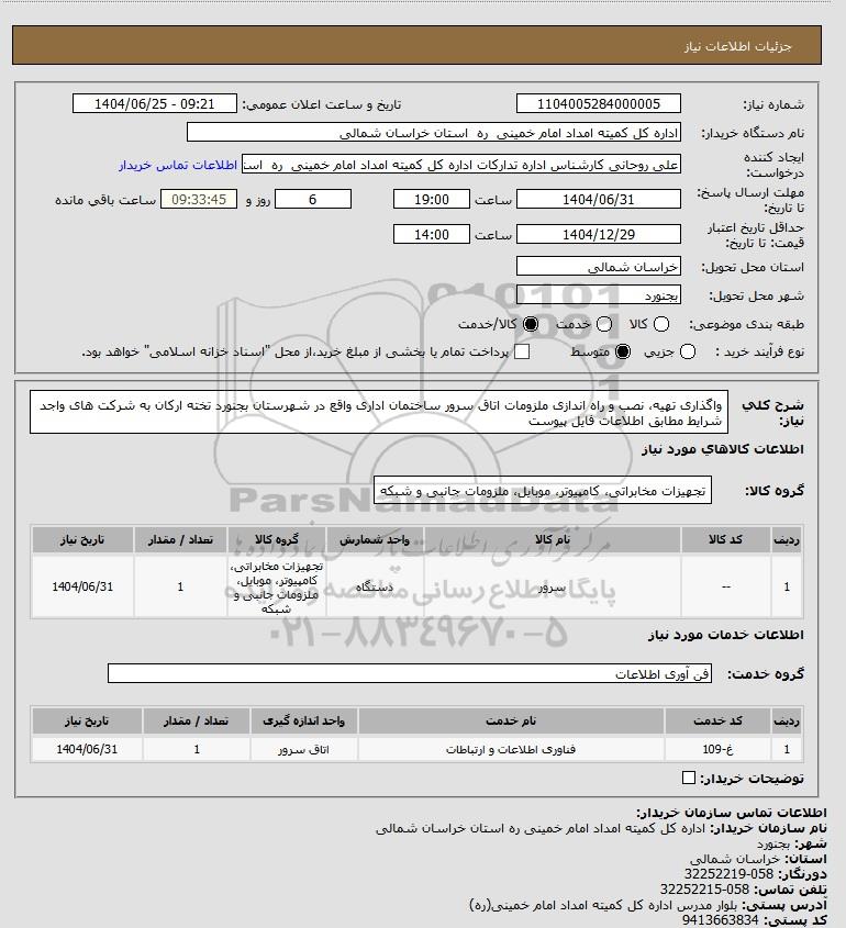 نام دستگاه خریدار:اداره کل کمیته امداد امام خمینی ره استان خراسان شمالی
