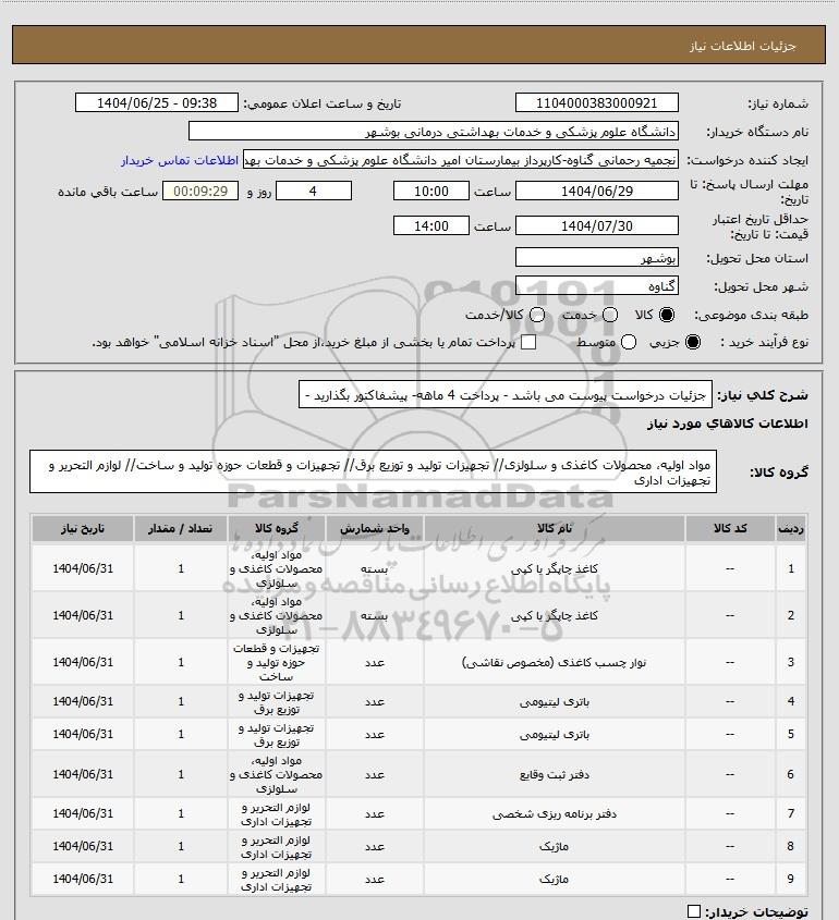 نام سازمان خریدار: دانشگاه علوم پزشکی و خدمات بهداشتی درمانی بوشهر